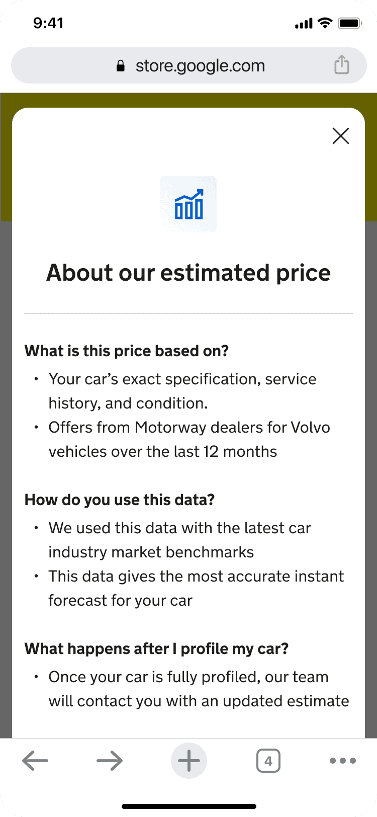 I joined Motorway in summer 2023 and after an “easy in” learning the way the company works on internal tools was moved over to the Growth team tasked with optimising top of funnel - in this case the first four pages a (new) user would see when landing on Motorway.co.uk with the intent of (potentially) selling their car.