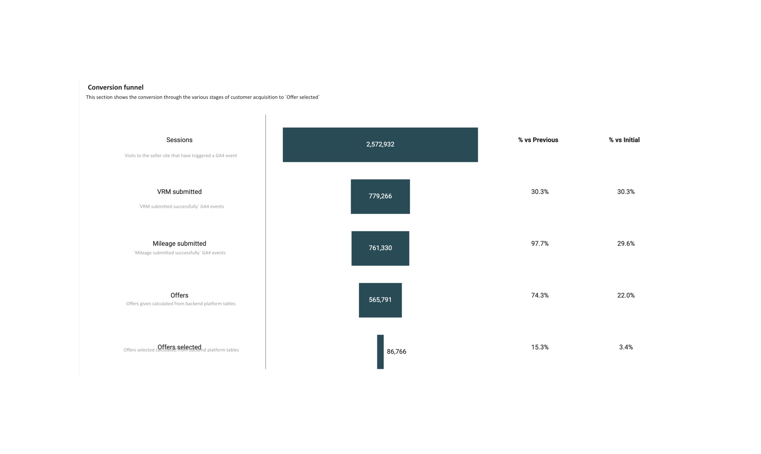 Looking at our funnel data we had two big opportunities spaces, the home page and the offer select page (offer select page being the larger of the two based on the numbers 15.3% vs 30.3% vs Previous).